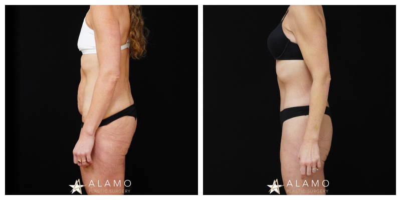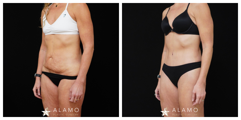 Esta mujer de 49 años quería recuperar su cuerpo después de tener hijos. Se sometió a una abdominoplastia, reparación muscular y liposucción (que se muestra seis meses después).