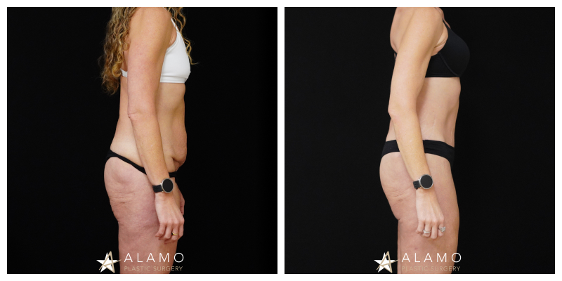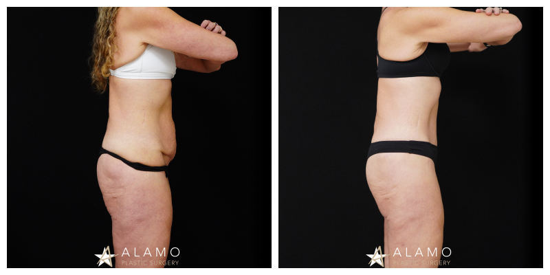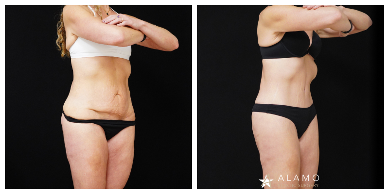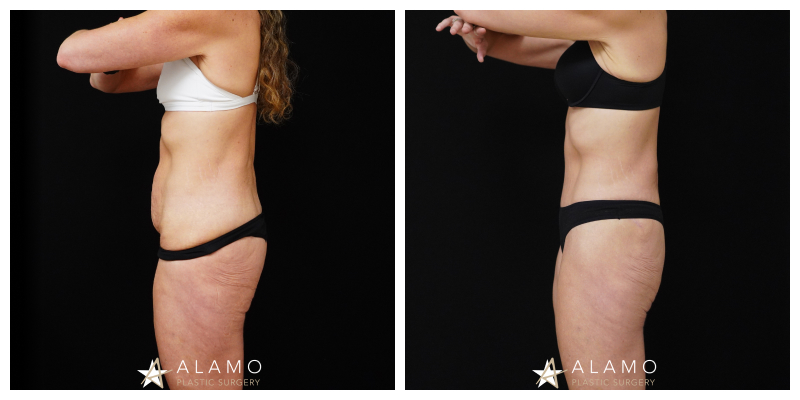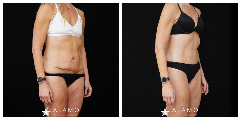 This 45-year-old female wanted to restore her body. She underwent a full abdominoplasty and muscle repair (shown 6 months out).
