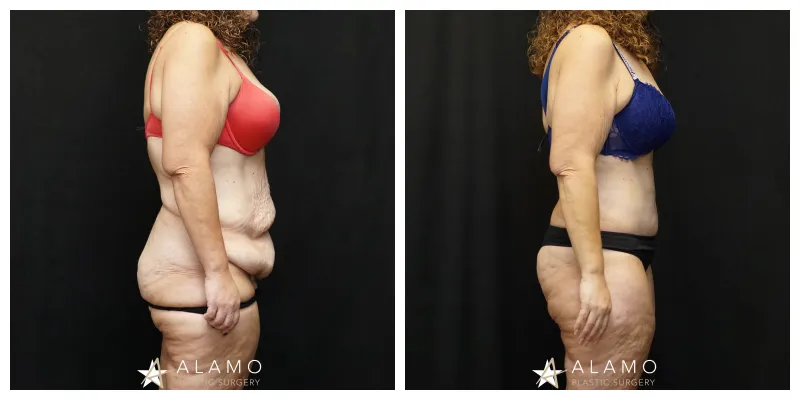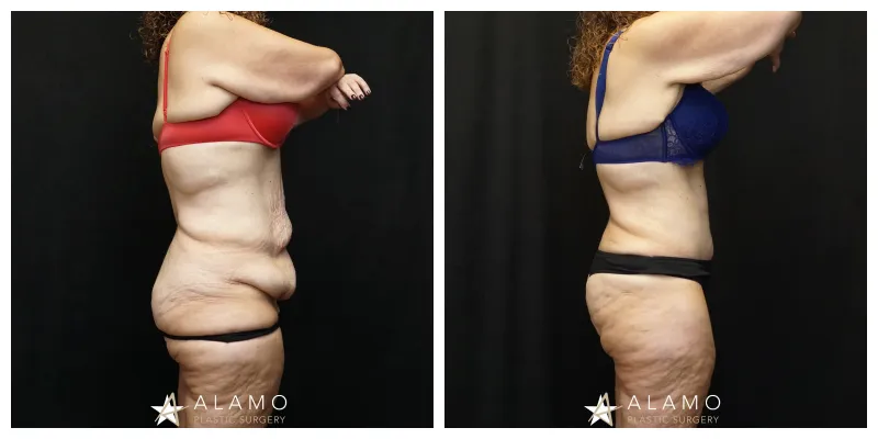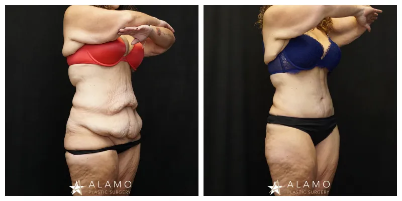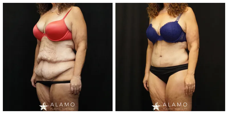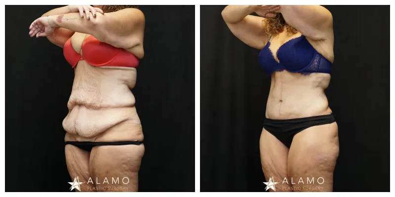 This 49-year-old female wanted to restore her body after massive weight loss. She underwent Fleur de lis Abdominoplasty with muscle repair and liposuction (shown 6 months out).